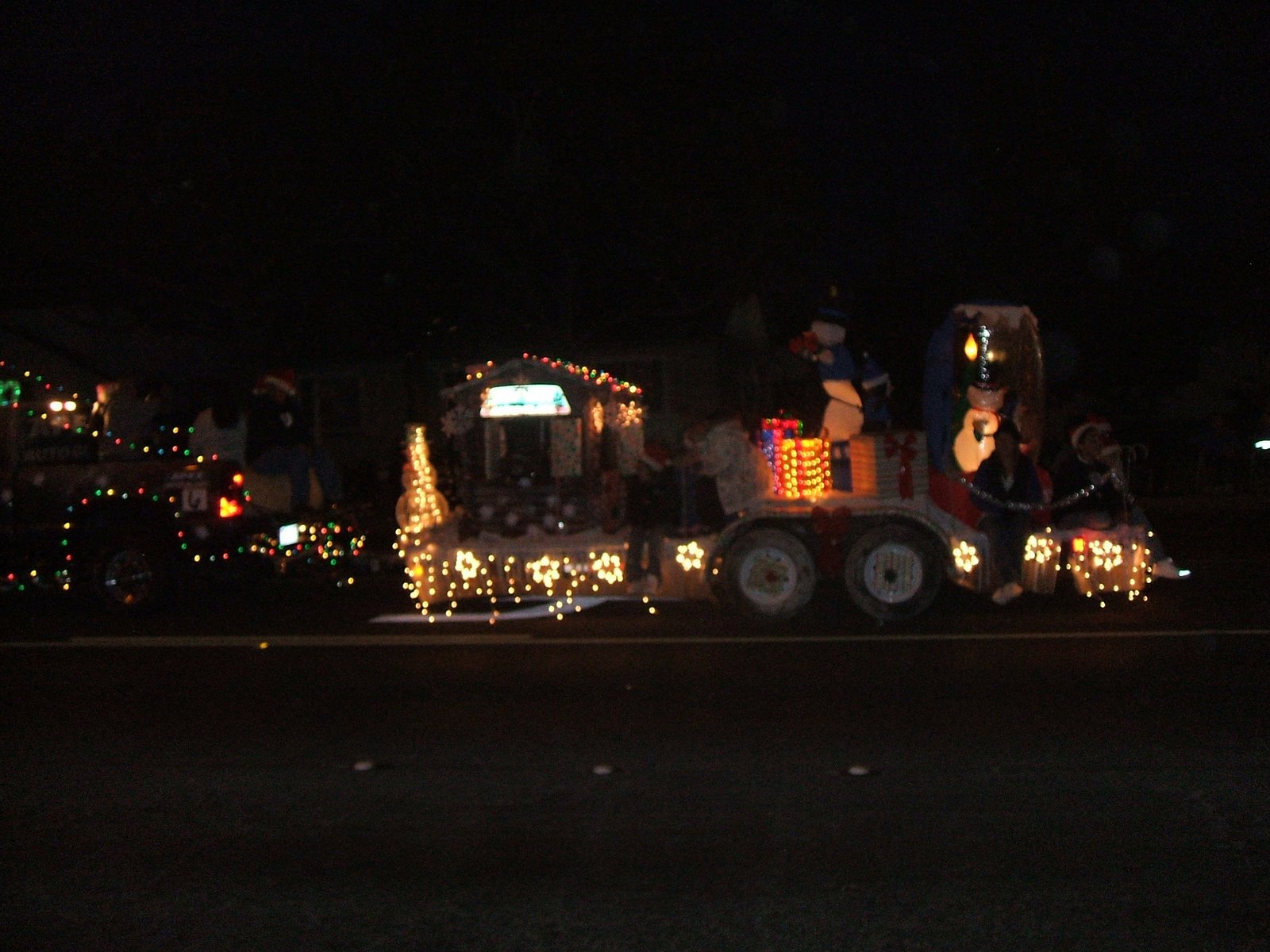 Last night we went to the Santa Maria Parade of Lights. It was a little chilly but we came prepared with blankets and winter coats. Nick yelled Merry Christmas to almost every float that passed by. They throw out a lot of candy and so Nick came home with a couple snow globes and a bunch of candy canes. All of the floats in the parade are decorated with Christmas lights and they look pretty cool. Most of the floats and all the marching bands play Christmas music so it is a really good time. Nick had a small meltdown over a kleenex pack. They were throwing packages of kleenex off this float and everyone around him got one and he thought they were candy so he totally freaked out. Some little girl gave hers to him to make him stop. He was even more mad when he realized it was only a package of Kleenex. Aidan did fairly well considering it was during his normal bedtime. He really liked the lights and the music.